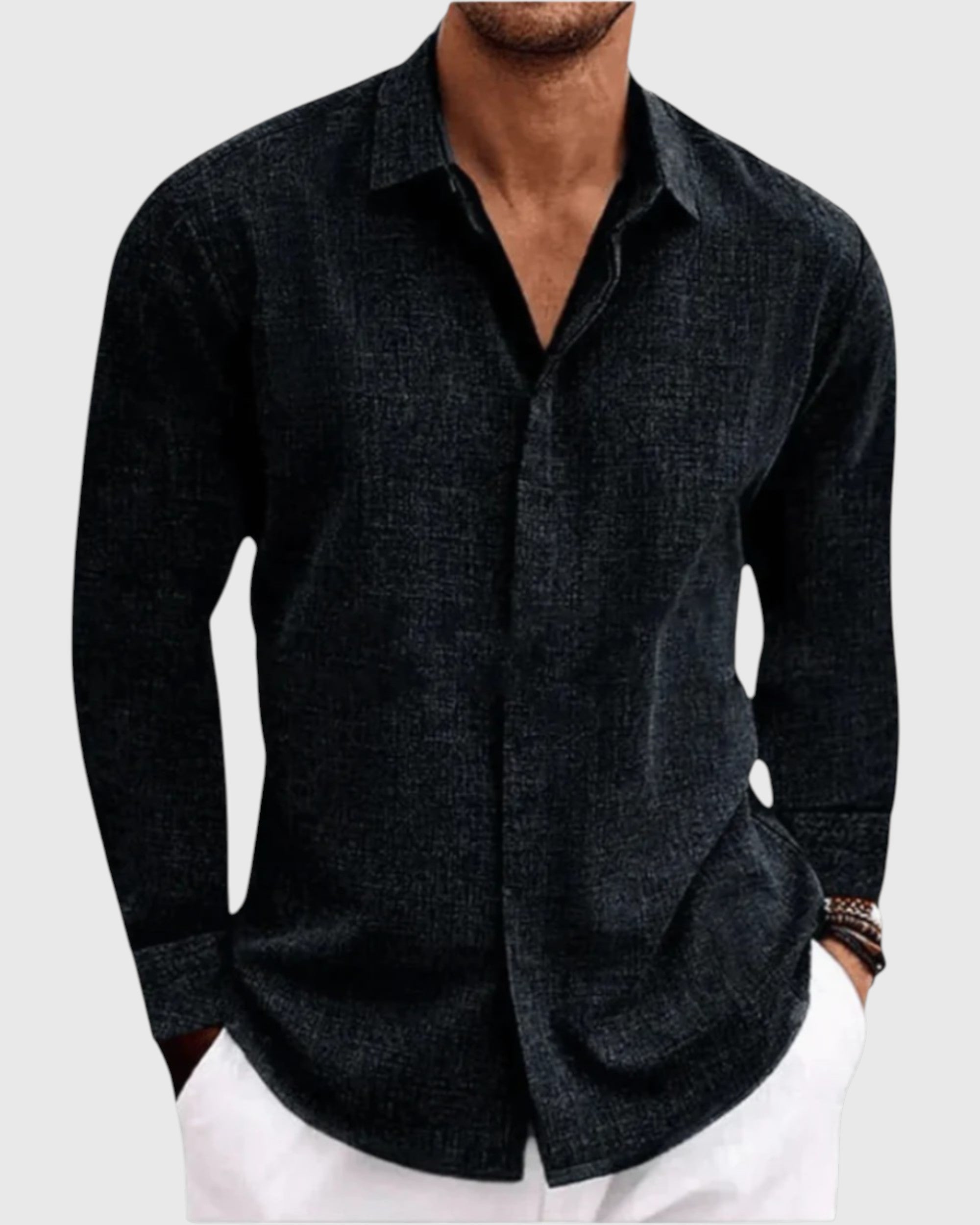 Skjorten Álvaro er designet til mænd, der værdsætter raffineret mode med et uformelt touch. Den er lavet af en blanding af høj kvalitet hør, der tilbyder en komfortabel, men elegant pasform, ideel til en afslappet udgang, et velplejet lag-på-lag look eller et moderne business casual outfit.