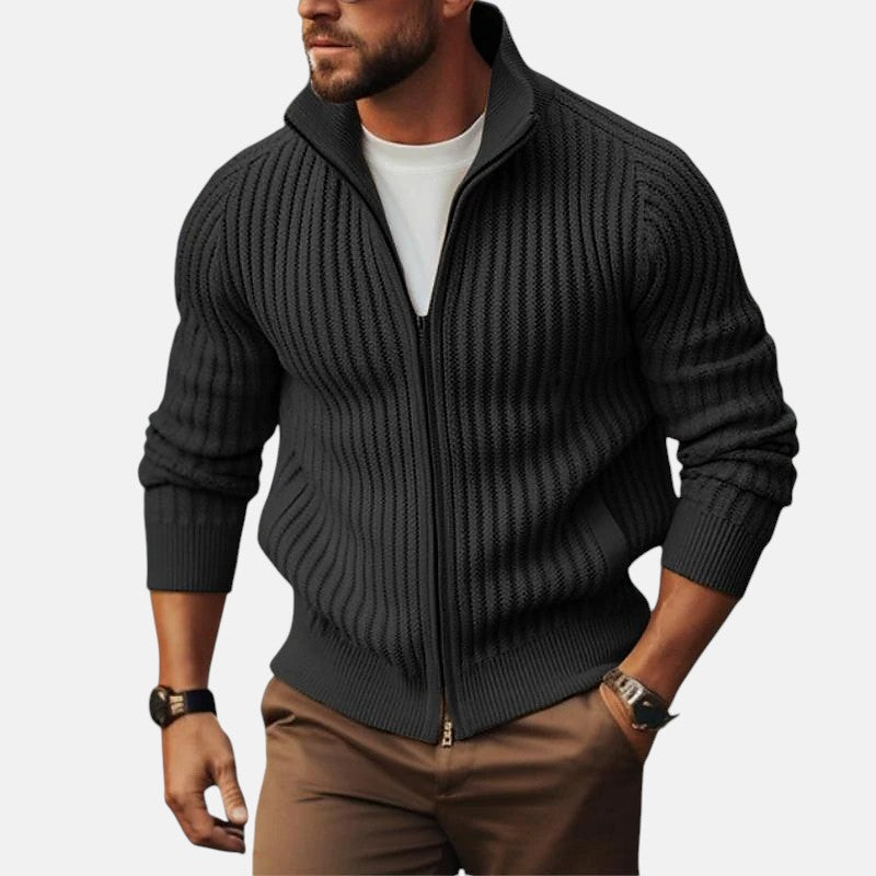 Javier | Cardigan med Lynlås og Høj Krave i Rib