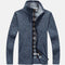 Denne strikjakke til mænd fusionerer stil og funktionalitet til kolde klimaer. Med en simuleret krave og en indvendig ruderforing tilbyder den varme og et strejf af elegance. Dens ribbede manchetter og kant sikrer den perfekte struktur og holder kulden på afstand.