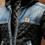 Dunmaterialet giver konstant varme, mens denimindsatserne tilføjer en autentisk og holdbar karakter.