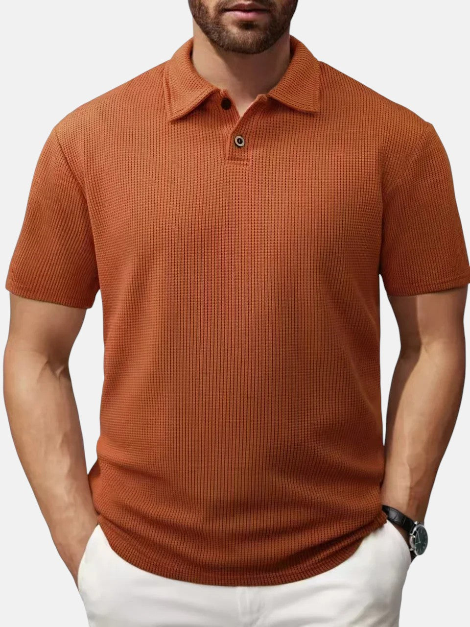 Hold dig Kølig og Stilfuld med vores Åndbare Polo T-shirt. Opdater din sommergarderobe med denne kortærmede polo, der kombinerer et åndbart tekstureret design og en klassisk krave.