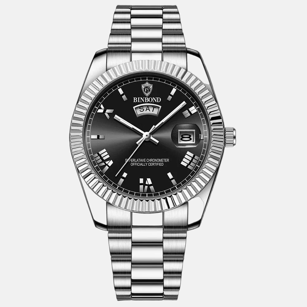 Vi præsenterer BinBond-uret, en exceptionel sammensmeltning af præcisionsingeniørkunst og tidløst design. Designet til dem, der kræver pålidelighed, skiller dette eksklusive ur sig ud med sin italienske kvartsbevægelse og sin omhyggelige fremstilling.