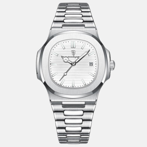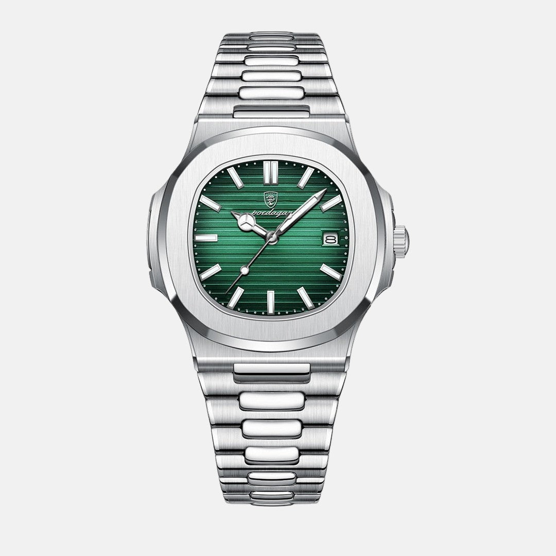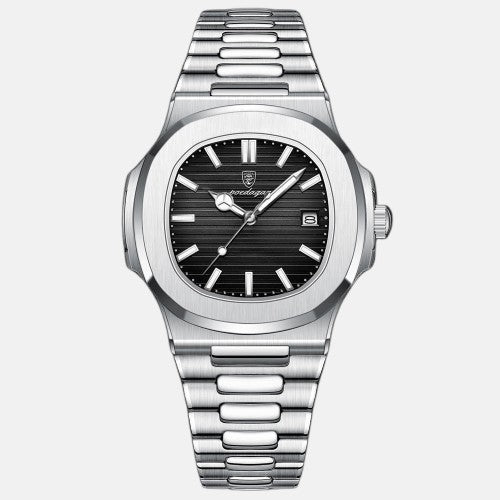 Nyd Poedagar-uret, en perfekt kombination af præcision fra italiensk kvarts, schweizisk teknologi og det holdbare rustfrie stål 316L. Designet til daglig luksus.