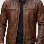 Det bløde og komfortable indre for sikrer en behagelig pasform, mens de robuste metal lynlåse og motorcykelinspirerede detaljer fuldender det maskuline og autentiske look.