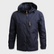 Denne vandtætte jakke med hætte til mænd er lavet af et vandafvisende stof. Den har en fuld lynlås, hætte og sidelommer med lynlås. Dens enkle og rene design gør den ideel til forskellige dagligdagsaktiviteter og udendørs brug.